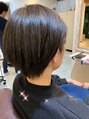 横は耳にかけられるギリギリの長さ、襟足も短めでさっぱりのショートスタイル!耳掛けするとまた違った雰囲気になります☆カラーはオレンジっぽさをしっかり消したミントアッシュ★