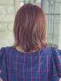 伸ばしかけの方にもおすすめの外ハネミディースタイル☆ ちょうど肩にあたる長さなのでスタイリングも楽にできます!! バングは流し気味で大人っぽく見せました。 カラーリングはピンクバイオレット系でツヤっぽく女性らしく。