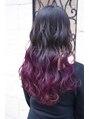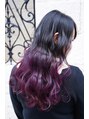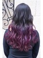 地毛ベースに中間から毛先にかけてブリーチ後、イルミナカラーでピンクパープルのグラデーションカラーに◎