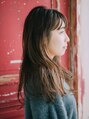 重ためAラインのロングスタイル!全体にゆるいパーマをかけることで重さに動きが出るのでロングでもラフ感がでてストレートロングスタイルに飽きたかたにおすすめ!バングはシースルーにし透け感抜け感をプラスして軽やかに!