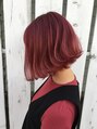 ブリーチをしてからレッド系のカラーをしました。カットはやや前下がりの切りっぱなしボブです。【熊谷】