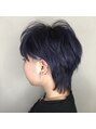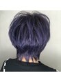 学校卒業してから初カラーのお客様です。1発ブリーチからのブルーバイオレットにしました。ショートウルフスタイルに似合わせた辛めのハードなデザインにしてます。サイドの刈り上げもアクセントがあってその人の雰囲気を一層引き立ててます。