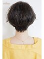 襟足をタイトにしてすっきりとさせ、トップは丸みのあるフォルムになるにすることでメリハリのある髪型に。後頭部の丸みは残しつつ、スライドカットで動きを。カラーリングはアプリエカラーで外国人のような赤みのない透き通るような髪色に。