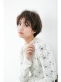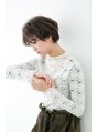 くせ毛を活かすボブショート。前髪に視線が行くように襟足はスッキリとさ せるとやぼったくない。全体的にワックスを揉みこんで束感を出して仕上げる。パーマをかけるとスタイリングが楽に。カラーはフォギーグレージュカラーで柔らかくアンニュイな質感に