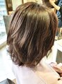 暖かい季節になってのスタイルチェンジ。肩に当たって軽やかに動きが出るS/Sスタイル。透明感のあるアッシュにラベンダーカラーをプラスして柔らかな印象に。