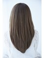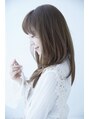 毛先に重さを残したミディアムロング。空間をあけることで毛束がゆれるようにしてあります。前髪は幅広めのパッツンバングでちょっとモード感をプラスしました。やわらかなラベンダーをのせたモーブカラーでふんわり感を☆