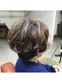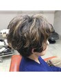 柔らかい質感とほつれ感を出した外国人風のウェーブカールスタイルです。デザインポイントは膨らみすぎない(頭でっかち)ようにブロックスタイルにカットしてフォルムバランスを整えています。ハイライトがアクセントになるカジュアルなパーマデザインです。
