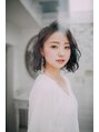 ボブスタイルにしっかりめのウェーブをつけてふんわり感をプラスしました。ムースを揉み込むだけでも決まるから毎日のセットが楽しくなりそう。カラーリングはアッシュブラウンでパサついて見えがちなパーマスタイルにもツヤ感を出しました。