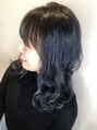全体に大量のハイライトを入れ、毛先はグラデーションにブリーチ。上からネイビーカラーをのせました。光によって色が変わるネイビーカラーはおしゃれで可愛いです!