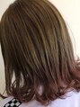 ダブルカラーで発色のキレイさを楽しむスタイル。毛先はピンクアッシュ、根元から中間は赤味を消すためのカラーをのせてしっかりピンク味を発色させました。