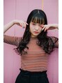 ロングスタイルの巻き髪スタイル◎切りぱなしスタイルの重めロングにした目の位置でウェーブ状にボリュームを出して巻くことでややAラインのキュートな印象のシルエットに。