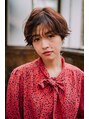 襟足短めのショートスタイル。ボーイッシュになりがちなショートカットスタイルですが、バングや耳に周りを少し長めに残すことで女性らしさを残しつつスッキリとしたデザインに仕上がります。少し毛先を外ハネにしてカジュアルに!
