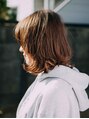 伸ばしかけの方にもおすすめ!軽めなボブ。ボブのベースはそのままに、トップにレイヤーを入れることで動きと軽さを出しています。前髪は目にかかるうざバングで可愛すぎずに、クールカジュアルな印象に寄せています。