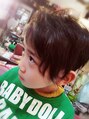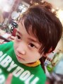 クセを生かしたツーブロック&デザインカット。キッズにも好評です。