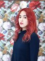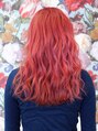 数日後のカラーの変化でオレンジになる事を狙って、ピンクでカラーリング。オレンジのベースを作るためブリーチは1回のみ。カラー直後はピンク強め、光の加減でほんのりオレンジが浮かびます。数日間で明るめのオレンジになります。
