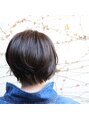 丸みのあるふんわりショート。顔まわりは動きが出るようにカットして小顔にみせるようにします。春らしくラベンダーアッシュで透明感を演出しています!