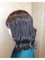 全体に細かくハイライトをいれその後グレージュをかぶせます。わかりやすいくらいハッキリ入れるのとハイライト部分にカールをつけることによって立体的な動きをあたえます。