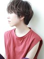 ハイライトミックスのデザインカラーショート。ショートヘアに動きがつきます。前髪は目のラインぎりぎりの大人マニッシュなショートスタイルです。