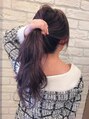 全体に入れたハイライトにもこだわり、レイヤー部分は極細,アンダーはスライシング(線でとるハイライト)をランダムに入れました。後からかぶせたモーヴグレージュがかわいいです◎前髪はリップラインに設定。プラチナTMで色持ちとツヤ感をプラス!