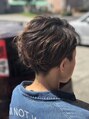 全体的にクセを活かしてウェーブ風スタイルに!右側はタイトに耳掛けして、左側はふんわり乾かせばアシメ風でよりオシャレに!よりカジュアルに!