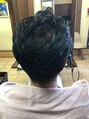 サイドがツーブロックでバックは自然につなげた刈り上げ。ゆるめにパーマをかけてます。