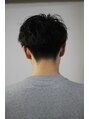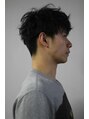 クシャっとした毛の動きが柔らかいイメージのしよーとパーマスタイルです。ストレートだとお坊ちゃん感が強く出るのでパーマをかけてこなれイメージに仕上げます。
