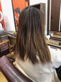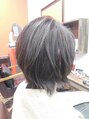 伸びきったロングをバッサリ肩上に♪段もいれつつ自然に内に入るように切っておけば普通に乾かすと、内巻きボブセットで外ハネにもできて、アレンジ自在のショートボブスタイル♪ふんわり感が増すように赤味を消してカラー♪