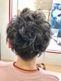 ランダムなパーマにツーブロックでスッキリ感を。グレーアッシュのハイライトを入れて立体的に