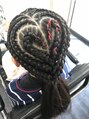 全頭をハートで囲んだデザインのコーンロウです!エクステも混ぜることができるので、お好きな色のエクステを混ぜて目立っちゃいましょう!!