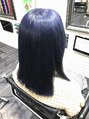 ブリーチした後、カラー+カラーのトリプルカラーで深みのある青髪に仕上げました!毛先はぱっつんに切り揃えました!