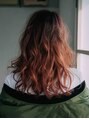 ハイトーンカラーが目を引くロングスタイル。ほんのりピンクのベージュカラーで柔らかい質感に。