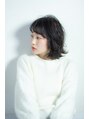 暗めのアッシュグレーでも外ハネに巻いてあげる事で重たさを感じさせないボブに♪