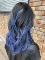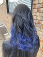 ブルーブラックからのブルーグラデーション。ブリーチ1回から2回必要です!根元は暗めですが毛先に遊びが欲しい方オススメです♪
