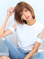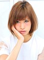 前上がりベースで長さは小顔にみえるアゴラインに設定。顔まわりと表面にだけレイヤーを入れふわっと軽さをだします。