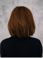 肩ラインのナチュラルボブ。表面には少しだけレイヤーを入れて、ふわっとした軽さをだしてあります。重ためなシルエットに仕上げていますが、シルエットを崩さない程度には毛量を調整してあげるとまとめやすいと思います。カラーは明るめハニーブラウン。