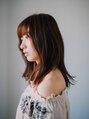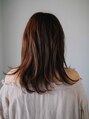 全体にやわらかな動きをつけたミデイアムロング。毛先にはおもかるな動きがつくように量感の調整をしています。カラーは明るすぎずに、透明感が出るようなベージュブラウンで光が透けて軽さがでるようにしています。