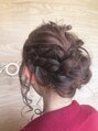 結婚のお呼ばれスタイル。緩く大きめな編み込みとリボンを組み合わせたアップスタイル!結婚式、二次会、花嫁前撮り、合コン、お出かけ、お仕事スタイル、その他たくさんのアレンジが可能です!