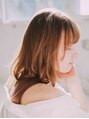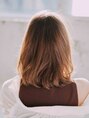 鎖骨あたりでカットしたミディアムスタイル。表面に少しレイヤーが入っているので毛先をワンカールで巻いてあげるだけでふわっと軽い仕上がりになってます。バングは少し目にかかるくらいで長めに残して子供っぽくならないように!