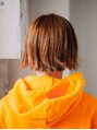 切りっぱなしボブで外ハネスタイル☆丸くなるシルエットより縦のラインになるようにするのがトレンド感もでてgood◎前髪も切りそろえて眉上でちょっと幼めな感じでアクティブ感もあるスタイルにしています。