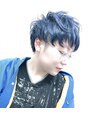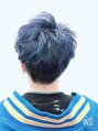 プラチナブルー。光の当たり方によって色の表情が、かわるのが、イルミナカラーのいいところ。個性派ショートとの相性バッチリ!