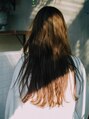 フロントに重さがあり、全体が重軽なスタイルです。重く見えがちなロングスタイルでも、毛先の軽さがあることと、I ラインのシルエットなので、重くなりすぎずオススメです。ゆるく巻くことで、抜け感のあるスタイルになります。【稲毛】