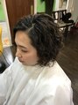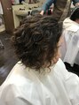 ソフトスパイラルパーマ、大き目のカールが希望とのことで、使用ロッド14ミリ、えり足はだれるので9ミリ使用、ダメージ毛でしたので、時間を短く仕上げました、きれいなカールでました!かかった時間120分。