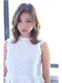 大人かわいいミルクティカラーのミディアム。メルトカラーやイノセントカラーとの相性も◎斜めバングでうぶバングを演出。短過ぎないシースルーが大人っぽいです。伸ばしかけの方はエアウェーブやデジタルパーマがオススメです。パーマで小顔に変身♪