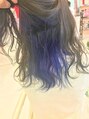 ブリーチ2回のブルーのインナーカラーです。ベースは1カラーのアッシュです。