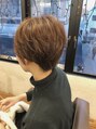 【お客様スタイルです】前下がりのショートボブをベースにカットしています。トップを軽くカットし襟足は横から見た時にくびれて見えるようにすっきり軽く切っています