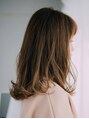 ノンレイヤーでカットした胸上のミディアム。間を間引きながら量の調整をすればシルエットを崩さず軽さを出せます。カラーはヌーディー系のベージュカラーで透明感をプラス。