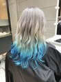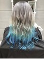 - インスタで話題毛先ブルーブリーチWカラーロングデザインカラー
