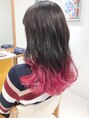 個性派・存在感は保証します!!可愛すぎる人気のアッシュ グレージュカラーのグラデーションからの、毛先にレッドの カラーバター!!発色の仕方は髪質によりますので一度ご相 談ください