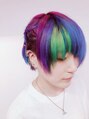 寒色縛りでぶん投げインスピレーションカラー!!フロントのライトグリーンに遊び心光る!!多色メッシュは染めてて楽しいからどしどし任せてちょ