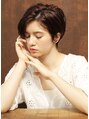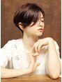 前髪長めのすっきりショート。後頭部は頭の形がよく見えるように丸みをつけ、襟足はキュッとしめ首元を綺麗に見せてくれます。短めショートですが、女性らしさを全開に出した綺麗ショートです!
